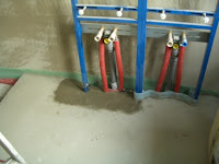 Die Lehrrohre im HWR habe ich heute auf Estrichniveau abgeflext. Unser Bauleiter hat uns den Tip gegeben, er meinte das geht jetzt noch besser als wenn erst mal Kabel drin liegen. Recht hat er, sonst hätte ich die Kabel gleich mit abgeflext. Also wieder mal ein Tip, den man sich merken kann.
